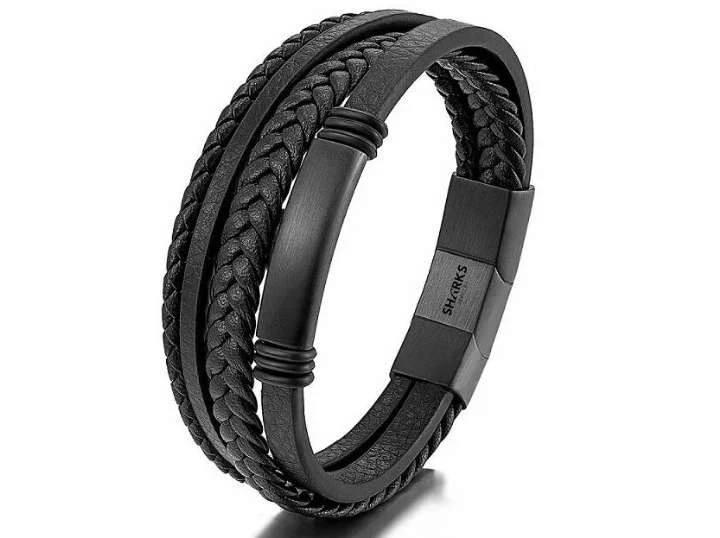 Следующим в рейтинг кожаных браслетов попадает кожаный браслет плато под гравировку от бренда SHARKS. Этот мужской многослойный плетеный браслет обладает особенностью в виде ID-плато, предназначенного для гравировки. Изготовлен из натуральной кожи, браслет обеспечивает прочность и долговечность. Он имеет застежку с удлинителем из хирургической стали, которая обеспечивает надежное крепление на запястье. Длина без удлинителя составляет 20 см, а с удлинителем – 21,5 см. Браслет подходит на запястье от 17 до 20 см. Застежка и плато изготовлены из хирургической стали 316L с использованием сильного магнита и фиксатора. Этот строгий мужской браслет SHARKS привлечет внимание окружающих и подчеркнет ваш вкус.