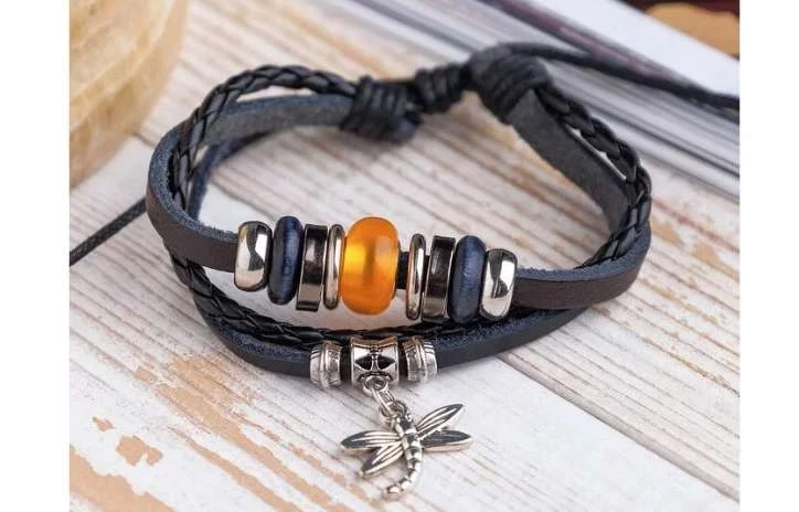 Унисекс кожаный браслет Хиппи стрекозка