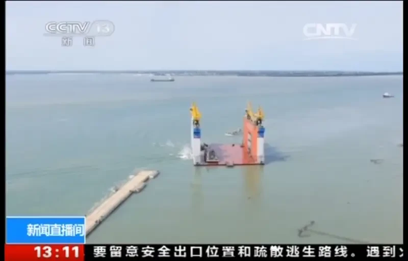 А дела идут, надо сказать, интересно. Собственно, многие занервничали после того, как в Интернете засветились изображения вроде бы китайского коммерческого парома с горизонтальной посадкой (RO/RO), соединённого с временным причалом баржей с выдвижными опорами. Что такого? Да в принципе, не повод для беспокойства, но…