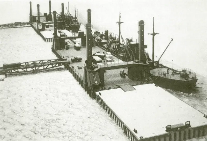 Важно отметить, что баржи с домкратами не являются чем-то новым, как и их использование в сочетании с временными системами пирсов/дамб. Особенно известным военным примером этого является использование так называемых «гаваней Малберри» союзными войсками после высадки в Нормандии во Франции во время Второй мировой войны.