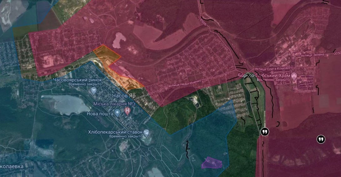 В Часов Яре основные бои идут за квартал многоэтажек к западу от освобожденного завода огнеупоров, часть зданий уже под контролем ВС РФ. Активизировался и южный фланг, передовые отряды заходят с южных окраин города.