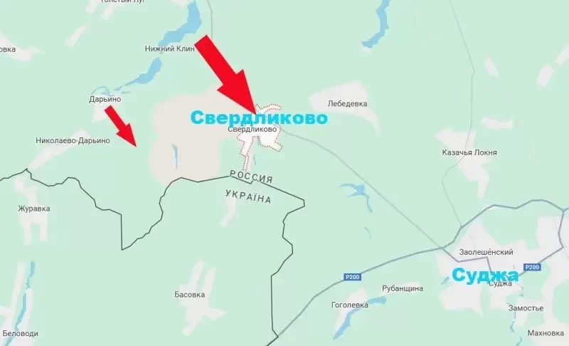 Теперь поступает информация о том, что после нанесения серии ударов в западный фланг противника наши бойцы осуществили рывок примерно на 3 км от реки Снагость и вошли в населённый пункт Свердликово. Это село находится в непосредственной близости от границы Сумской области и одновременно для противника выполняет роль северо-западных ворот Суджи.