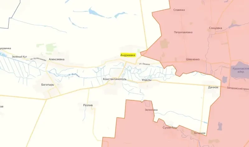 Однако ситуация ухудшилась для ВСУ не только в Андреевке, но и в Дачном к западу от Курахово, российские войска продолжают выбивать украинцев из села. В то же время началось продвижение ВС России и со стороны села Сухие Ялы.