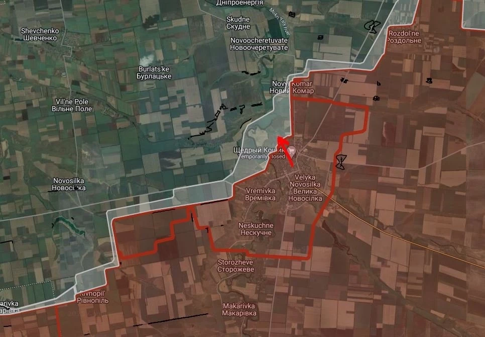 Также бойцы ВС РФ вышли из Удачного и проводят перегруппировку, продвинулись южнее в западном направлении. Продвинулись южнее Новоелизаветовки.