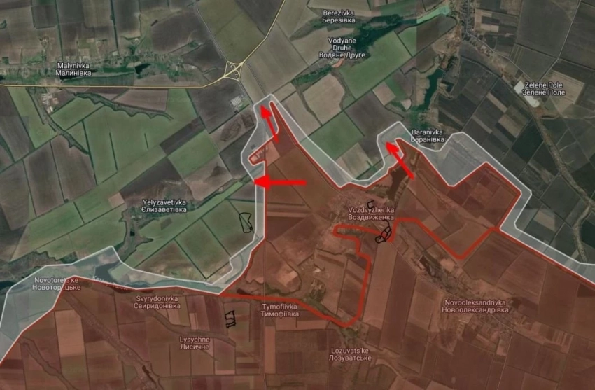 На Покровском направлении российские войска расширили контроль территории в районе Воздвиженки на запад, север и восток, давят в направлении Елизаветовки.