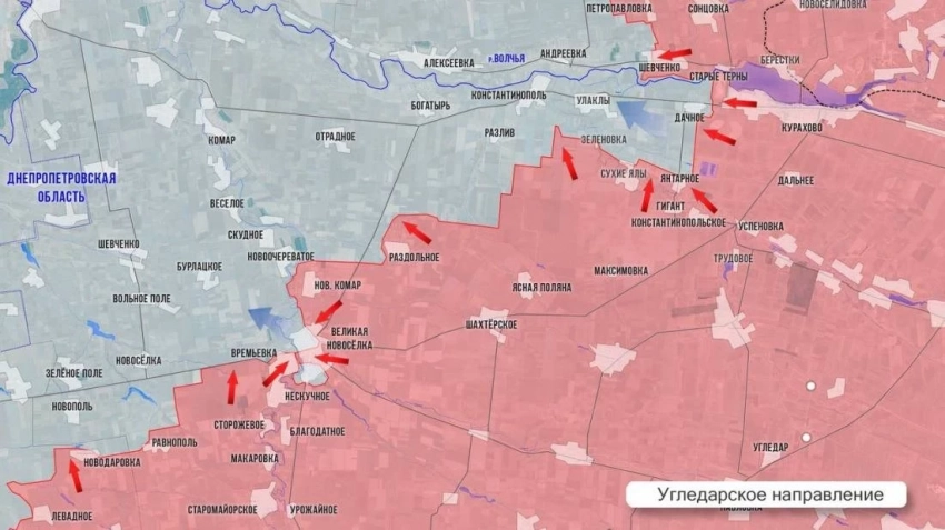 На Угледарском направлении вероятно, здесь будет некоторое снижение активности - наши будут подтягивать снабжение и проводить перегруппировку сил. Возможны несколько сценариев дальнейших действий. Первый: движение на запад вдоль дороги на Гуляйполе, во фланг Запорожскому направлению. Второй: движение к Богатырю и Комару и поворот по дороге на Запорожье. Третий: глубокий клин в оборону ВСУ к дороге Покровск-Днепропетровск. А пока бои идут в районе Нового Комара и Новоочеретоватого. К западу от Курахово тяжелые бои в Дачном, где ВСУ возвели мощные рубежи. Позиционные бои вдоль северного берега Сухих Ялов - от Зеленовки до Янтарного. Штурмы армии России идут по линии Улаклы - Константинополь. На другом берегу продолжается интенсивное встречное сражение в Андреевке. Под контролем ВС РФ северо-восточная окраина, противник мощно контратакует, чтобы удержать от полного «захлопывания» крышку Кураховского «котла».