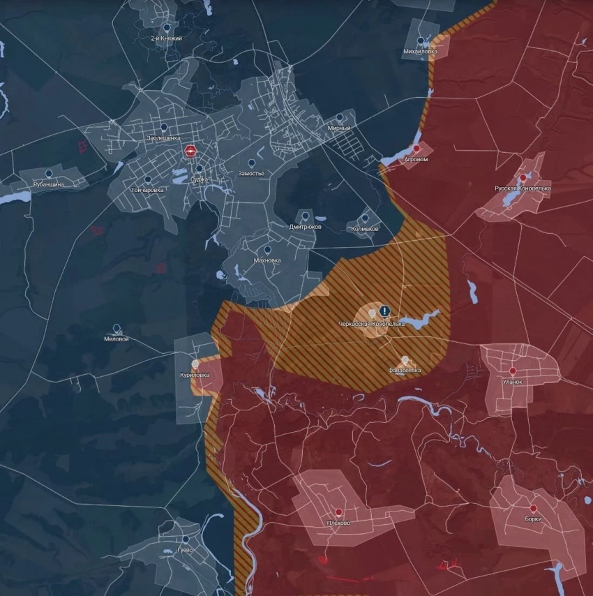 Сообщения, что ВС РФ потеряли Черкасскую Конопельку и Фанасеевку, оказались преждевременными. С мест сообщают, что деревня Фанасеевка и село Уланок полностью контролируются российскими войсками. На западе Черкасской Конопельки зацепились несколько групп бойцов ВСУ, там идут бои.