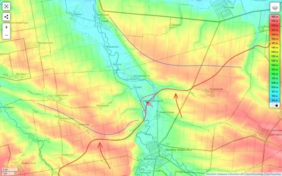 Дальнейшее расширение здесь нашего плацдарма приведет к выходу к ней (линии обороны ВСУ) в тыл и обеспечит нам дальнейшее здесь движение вперед.