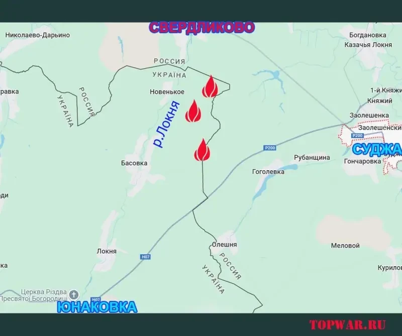 При этом у ВС РФ есть несколько вариантов. Наступать по «малому радиусу» - восточнее реки Малая Локня с продвижением к той самой автодороге, по которой идёт снабжение ВСУ в Курском приграничье. Либо же по «большому радиусу» - с выходом на узловой для снабжения и ротации группировки ВСУ населённый пункт Юнаковка – всё в той же Сумской области.