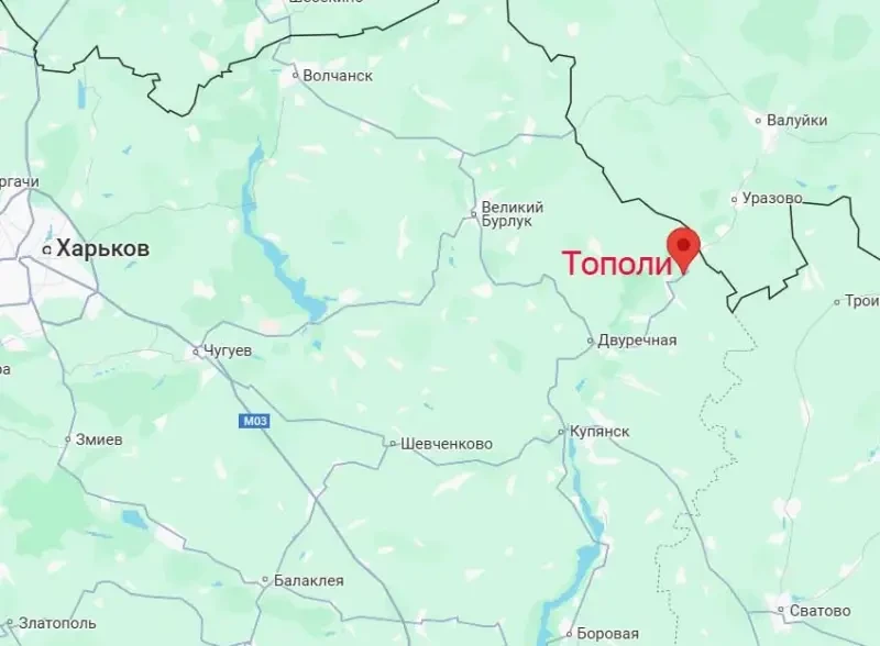 Теперь поступают сведения о том, что Вооружённые силы России вошли в населённый пункт Тополи. Это село располагается в километре от границы Белгородской области (Валуйская дорога) – на правом берегу реки Оскол.