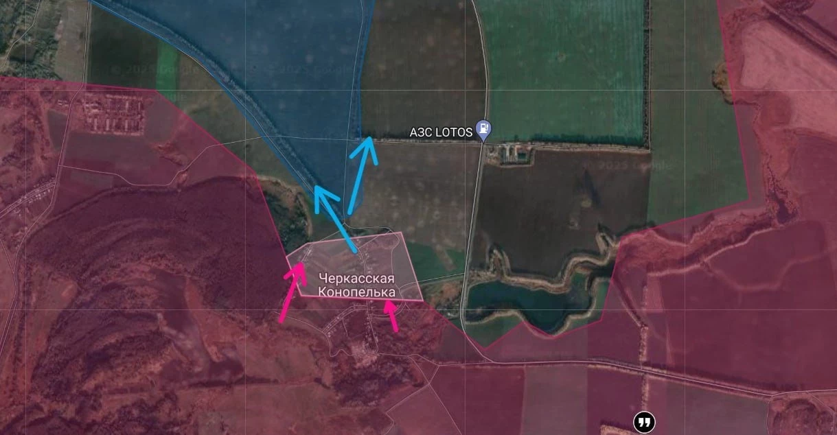 Российские войска имеют тактические успехи в Черкасской Конопельке, продвинулись в центральной части, а также на западном берегу р. Псёл в районе Куриловки.