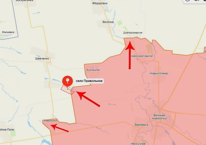 О взятии села возле Запорожской области под контроль также сообщает военкор Борис Рожин и «Два майора».