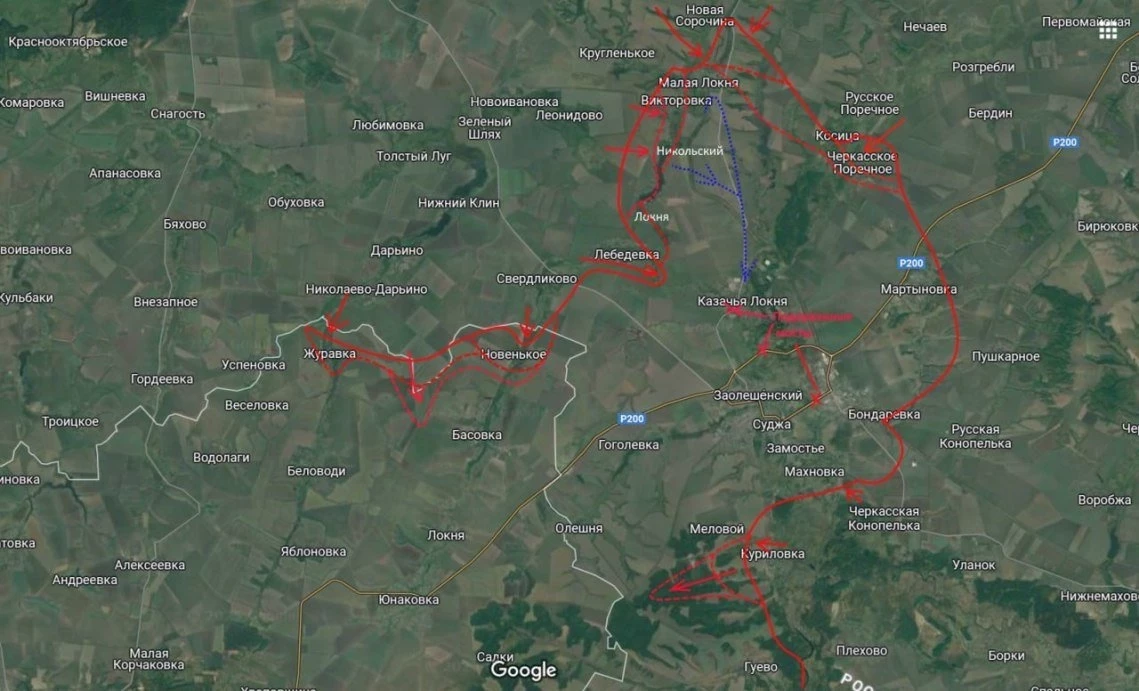 При этом российские войска поразили формирования тяжелой механизированной, пяти механизированных, мотопехотной, штурмовой, двух десантно-штурмовых бригад, двух бригад территориальной обороны и двух штурмовых полков вооруженных сил Украины в районах населенных пунктов Гоголевка, Гончаровка, Гуево, Заолешенка, Ивашковский, 1-й Княжий, Локня, Малая Локня, Махновка, Орловка, Рубанщина, Суджа и Черкасская Конопелька.