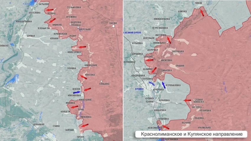 С Купянского направления сообщают об успехах в районе Степовой Новосёлки. ВС РФ наступают со стороны Ивановки. Продолжаются бои в Богуславке. На северном фланге ВС РФ продвинулись на 400 м в сторону Каменки. Навстречу есть продвижение со стороны Тополей.