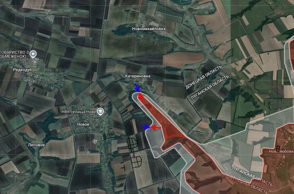 На Купянско-Лиманском направлении российские войска расширили контроль территории северо-западнее Орлянского, а также продвинулись в направлении Катериновки на глубину до 2.1 км, давят в направлении Катериновки и Нового.