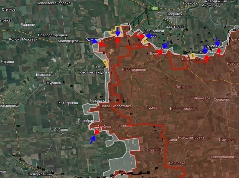 На Покровском направлении отмечаются боестолкновения в районе Лысовки, Сухого Яра и Шевченко, информирует Telegram-канал "БелВПО".