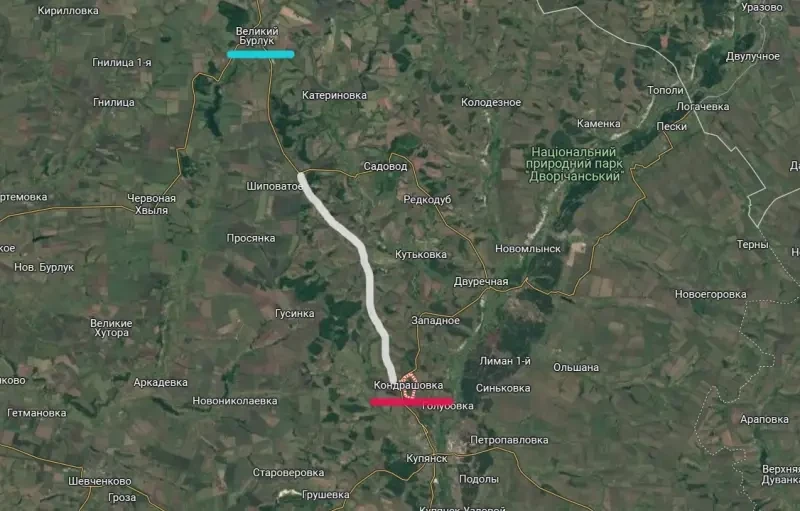Осложнение ситуации для противника произошло после частичного взятия нашими войсками под контроль сёл Кондрашовка и Тищенковка. Дело в том, что на этом участке линии боевого соприкосновения сходятся важные дороги, одна из которых – дорога на Купянск со стороны населённого пункта Великий Бурлук. Эта дорога оставалась единственным северным маршрутом снабжения Купянского гарнизона ВСУ после утраты контроля над Двуречной.