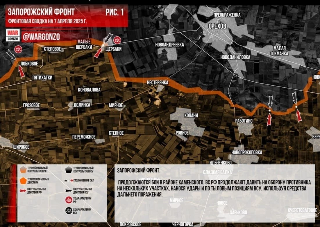 Обновлённая карта боевых действий на Украине по данным на сегодня, 07.04.2025: фронтовая сводка СВО