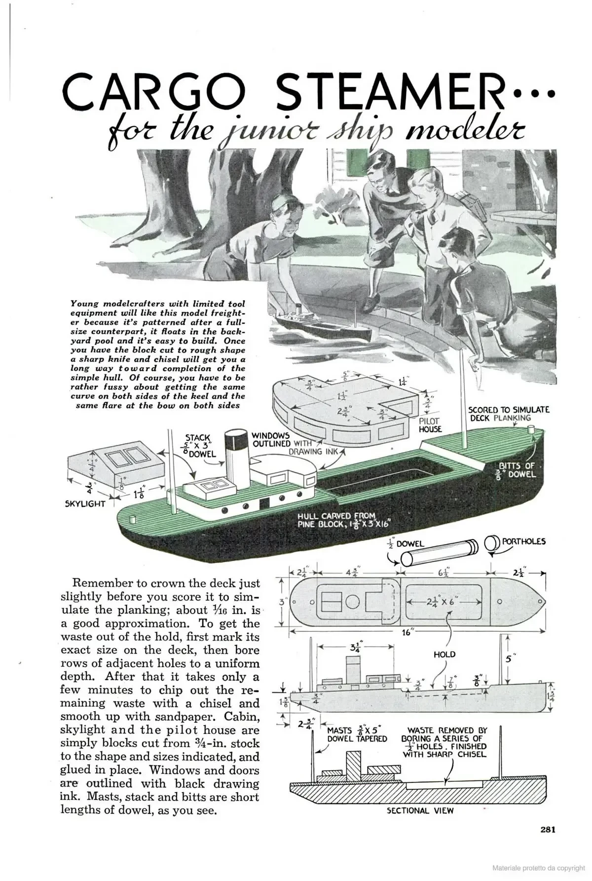Модель корабля во все времена была очень заманчивым объектом для приложения творческих сил, как детей, так и взрослых. И вот «Популярная механика» поместила на своих страницах сразу две такие модели: одну попроще и другую посложнее.