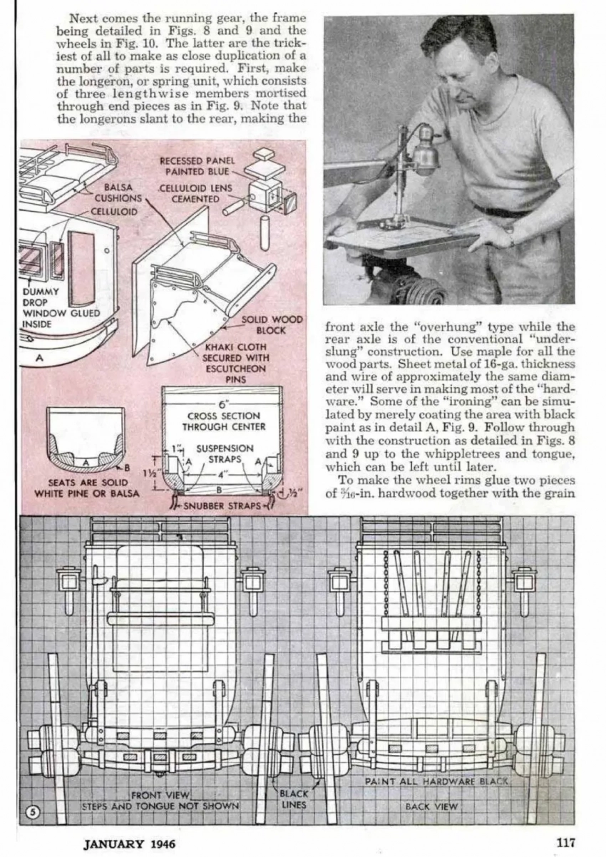 У каждой нации всегда был свой исторически сложившийся и потому любимый тип транспорта. В Англии и США таким транспортом стал дилижанс. Ну и, разумеется, его модель была предложена журналом «Популярная механика» для изготовления ещё в 1946 году. «Дилижанс» – культовый фильм 1939 года, «Гордость и предубеждение» (1995), ну и, разумеется, «Наш человек с бульвара Капуцинов» (1987), ну никак не могли обойтись без этого вида транспорта. В январском номере «Популярной механики» было опубликовано сразу несколько статей о том, как сделать его модель.