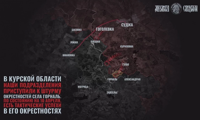 В Курской области продолжаются ожесточённые бои в районе Горналя и Олешни: карта боевых действий по состоянию на 11.04.2025