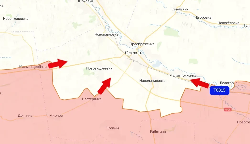 Продвигаясь вдоль дороги Т0815, российские войска заняли несколько квадратных километров в окрестностях Малой Токмачки, а также в самом населённом пункте – южнее реки Конка.