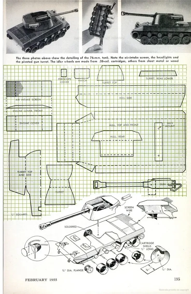 Были в журналах самоделки для взрослых. Были и для детей. Например – вот такой игрушечный танк