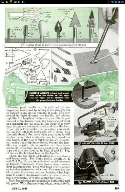 Журнал «Популярная наука». Апрель 1945 года. Рассказ о том, как сделать стрелы для лука