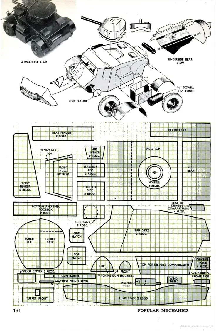 Ну а далее журнал помещал чертежи разных деталей и рассказывал о том, как и из чего их следует сделать. Журнал «Популярная механика», 1953 г.