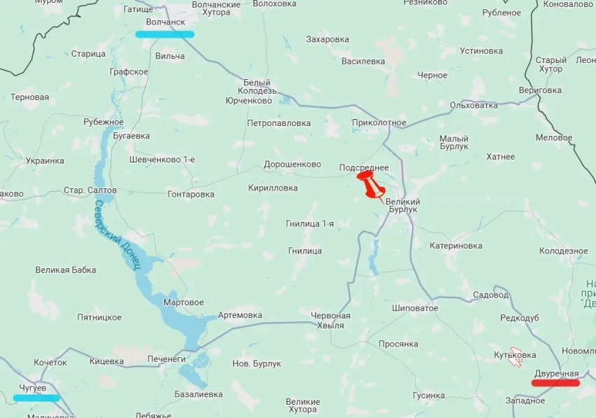 Таким образом наши войска не только увеличивают плацдарм к западу от реки Оскол, но и продвигаются в сторону важнейшего для ВСУ транспортно-логистического узла на северо-востоке Харьковской области – Великого Бурлука.