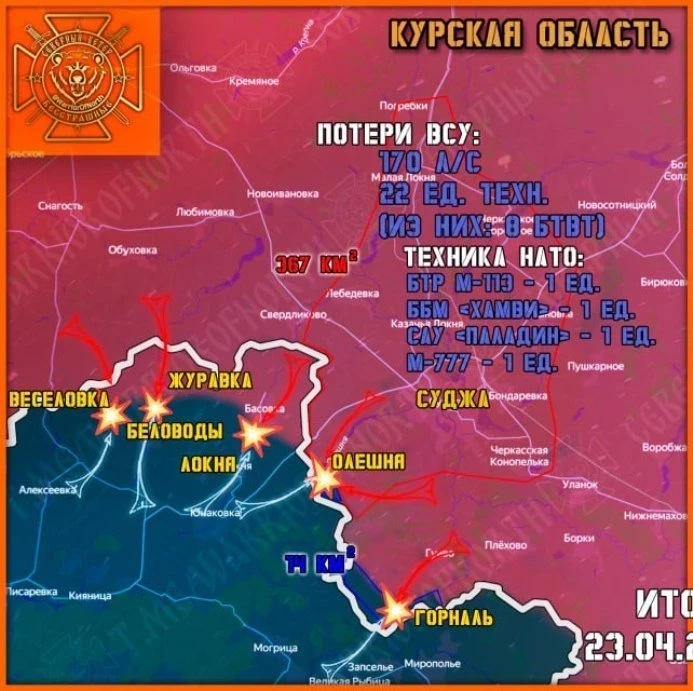 Главные новости » Эксклюзив » В Курской области идут ожесточённые бои вокруг Горналя: свежие данные на 24.04.2025
