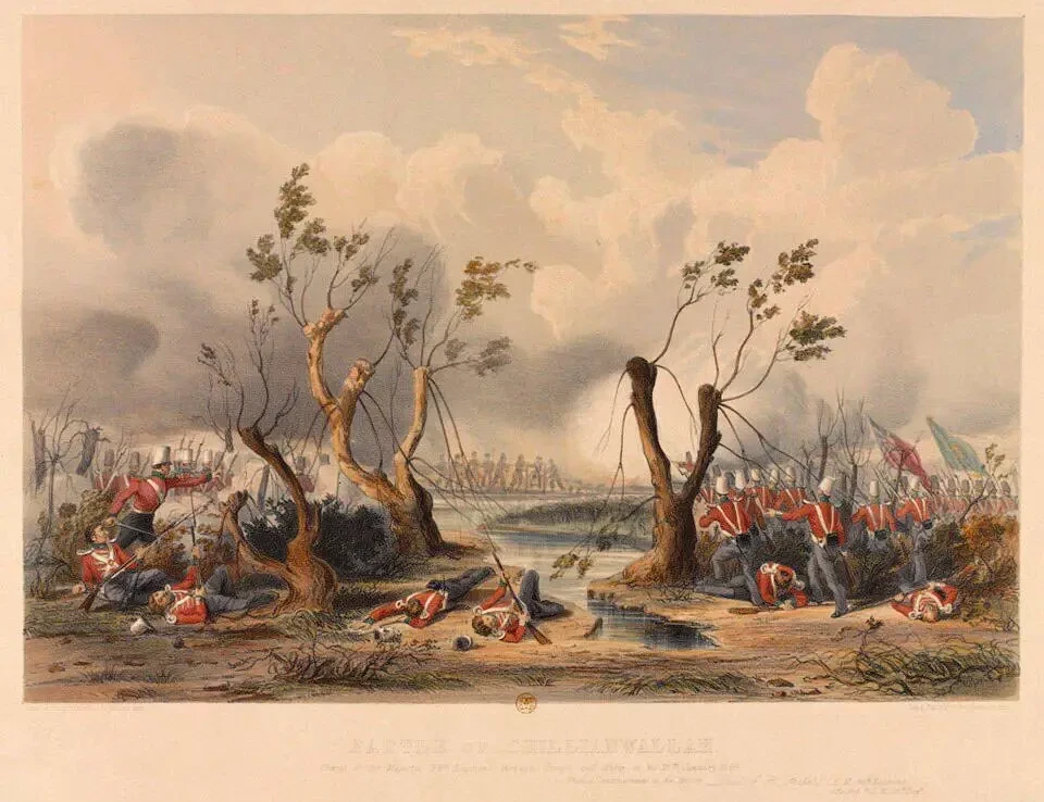 Дальше последовало всё то, что часто случалось в битвах, где командовал сэр Хью Гоф. Он посчитал, что сикхи укрепились на левом берегу реки Джелум, в 85 км от Лахора. Но, заняв деревню Чиллинвала, британцы увидели, что сикхи отошли с уязвимых позиций и сократили свой фронт. В общем, обойти их с фланга не удалось. После чего сэр Хью вздохнул с облегчением и послал войска в лобовую атаку. Дело было под вечер, но английский командующий опасался, что сикхи ночью станут обстреливать его лагерь.
