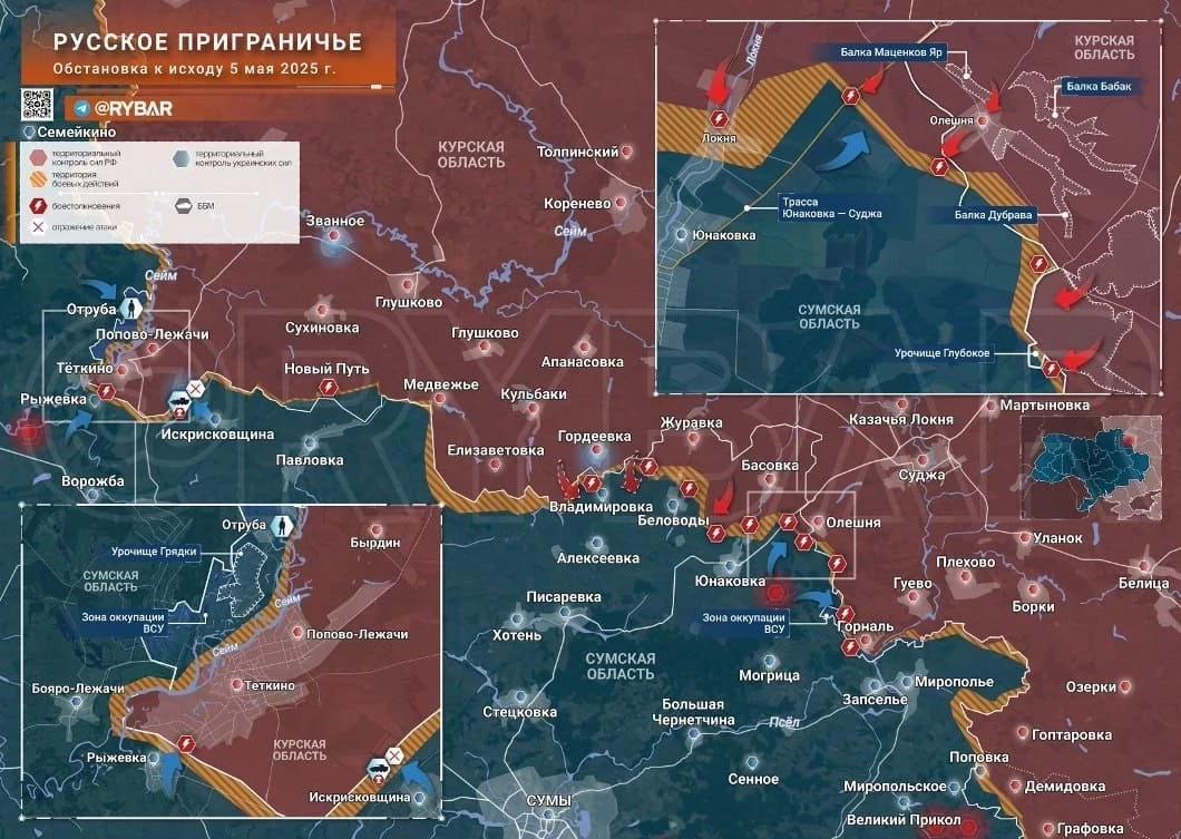 Свежая карта боевых действий в Курской области. Данные на сегодняшний день, 06.05.2025