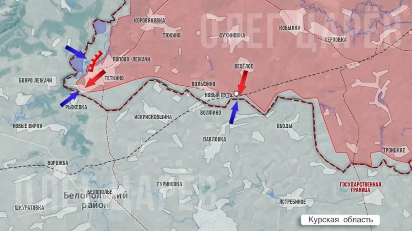 Важно, что атаки противника на Тёткинском направлении не позволили ему растянуть наши силы ГрВ «Север»: на Сумском направлении ВС России продолжили наступательные действия в направлении н.п. Беловоды со стороны н.п. Журавка и в направлении н.п. Локня со стороны Басовки.
