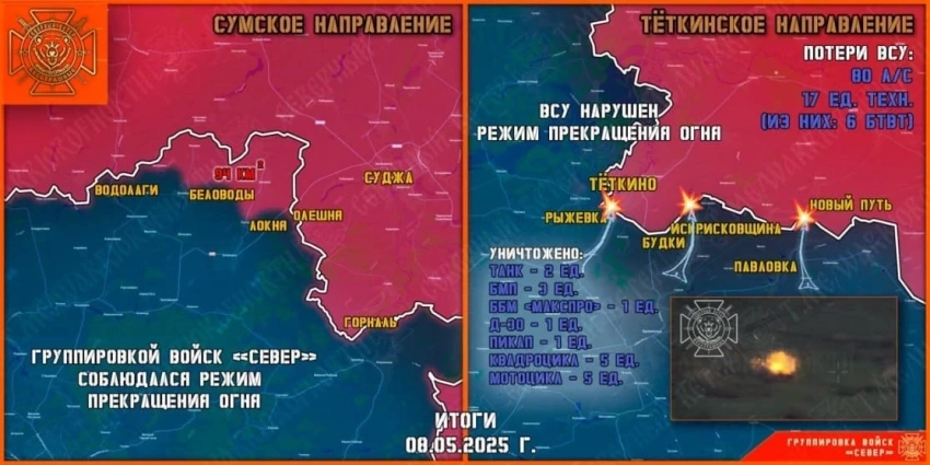 Главные новости » Эксклюзив » В Курской области идут тяжёлые бои у Тёткино в Глушковском районе: свежие данные на 09.05.2025