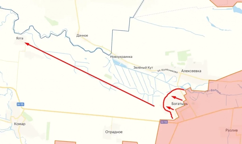 Теперь, когда оборона боевиков в оккупированном ими Богатыре пала, а наши бойцы завершают закрепление в селе, впереди открывается перспектива для броска в направлении сёл Ялта и Запорожье. На этом участке нет других населённых пунктов.