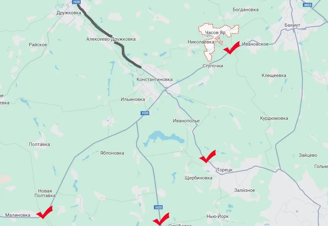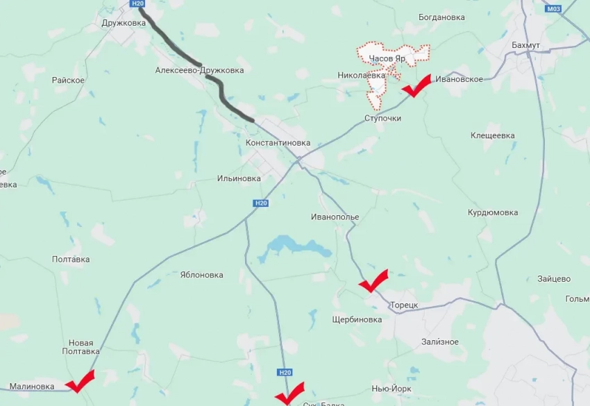 Одновременно с этим российские войска продолжают продвижение к Константиновки сразу с нескольких направлений. После освобождения нашими бойцами Малиновки и расширения зоны контроля на дороге Покровск-Константиновка у противника остаётся существенно меньше логистических возможностей на этих стыкующихся направлениях. На сегодня последним крупным транспортно-логистическим маршрутом для ВСУ в Константиновке и Ч.Яре является дорога Н20, ведущая со стороны Дружковки и Краматорска.