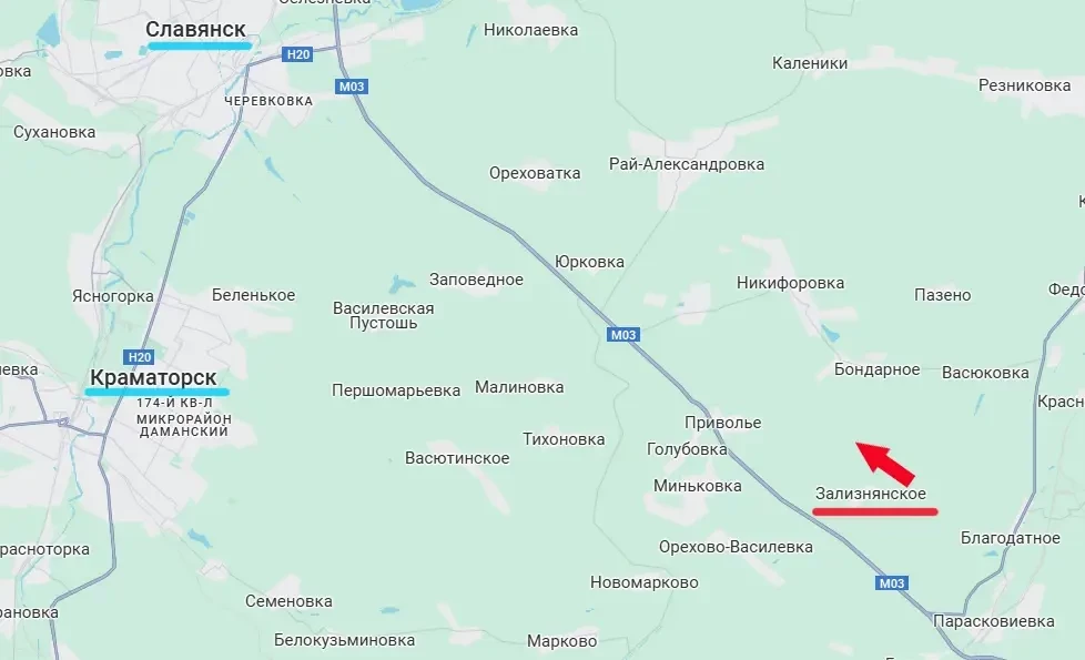 Поступает информация о том, что после артподготовки российские штурмовые группы заняли позиции противника севернее населённого пункта Зализнянское. В итоге под контроль ВС РФ на данном участке фронта перешли несколько квадратных километров территории вплоть до предместий села Васюковка. Занятые позиции важны тем, что находятся они на господствующих на местности высотах. И это высотная часть гряды, за которой как Славянск, так и Краматорск. Причём оба эти города географически находятся ниже новых российских позиций. Средний перепад высот – около 80 м.