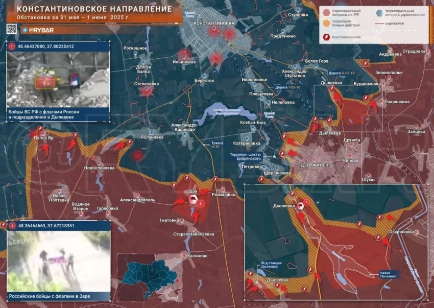 На севере от Часов Яра наши продвигаются на западе от Калинино. Из самого города сообщается об успехах в районе Шевченко и на руднике Блок-9. Наши военные бьют по опорнику ВСУ перед Предтечино и по объектам внутри села. По данным с мест, российские дроны уже долетают до Константиновских дач.