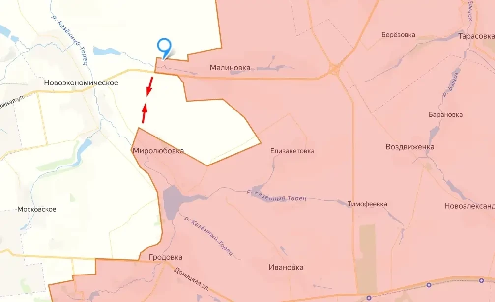 Поступают новые позитивные данные с территории Донецкой Народной Республики, освобождение которой продолжают наши военные. Международные OSINT-аналитики сообщают о переходе под контроль Армии России села Мирное в ДНР, которое расположено на трассе Покровск-Константиновка западнее ранее освобождённой Малиновки.