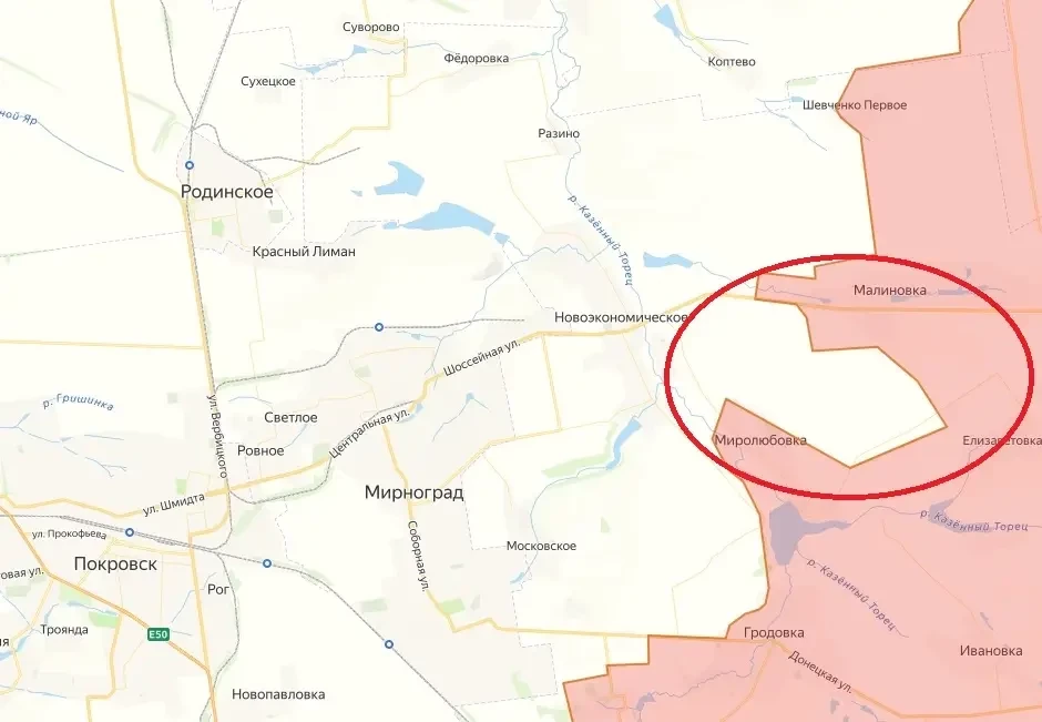Подразделения российской армии полностью зачистили выступ южнее села Малиновка к востоку от Покровско-Мирноградской (Красноармейско-Димитровской) агломерации.