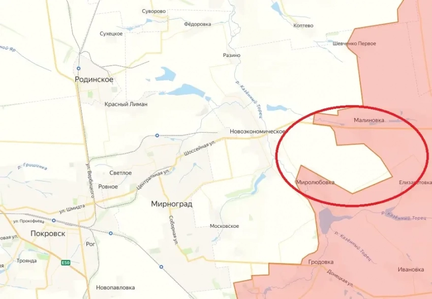 Охват Мирнограда продолжается: ВС РФ зачистили выступ южнее села Малиновка
