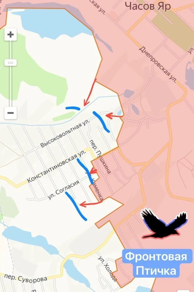 К западу от Торецка бои идут севернее Мирного и Шевченко Первого. Наши значительно продвинулись в центре Яблоновки, на фоне чего ВСУ постепенно оттягиваются из Плещеевки и Иванополья, чтобы избежать очередного котла. Минобороны объявило об освобождении Зари, что в 15 км к югу от Константиновки. Установив контроль над Зарёй, армия России выравнивает фронт, обеспечивая условия для последующего наступления на Константиновку. С восточного фланга Торецкого участка, от освобождённой Дылеевки до Константиновки 8 км.