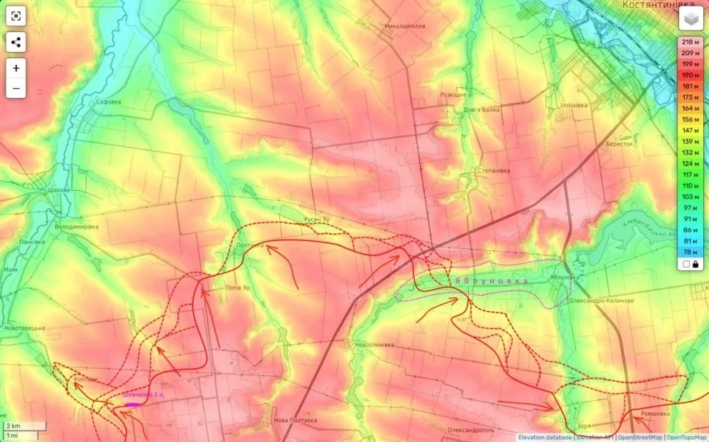 Также продолжаются бои й Яблуновке и постепенный дрейф фронта (это уже полоса 150 мсд 8А) на Александро-Калиново.