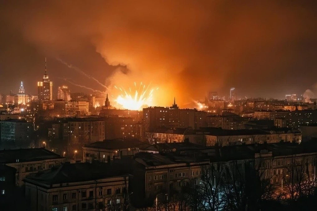 После того, как российские военнослужащие ударили по нему ракетой, вспыхнул пожаро, который спустя время начал подниматься изнутри в виде столба.