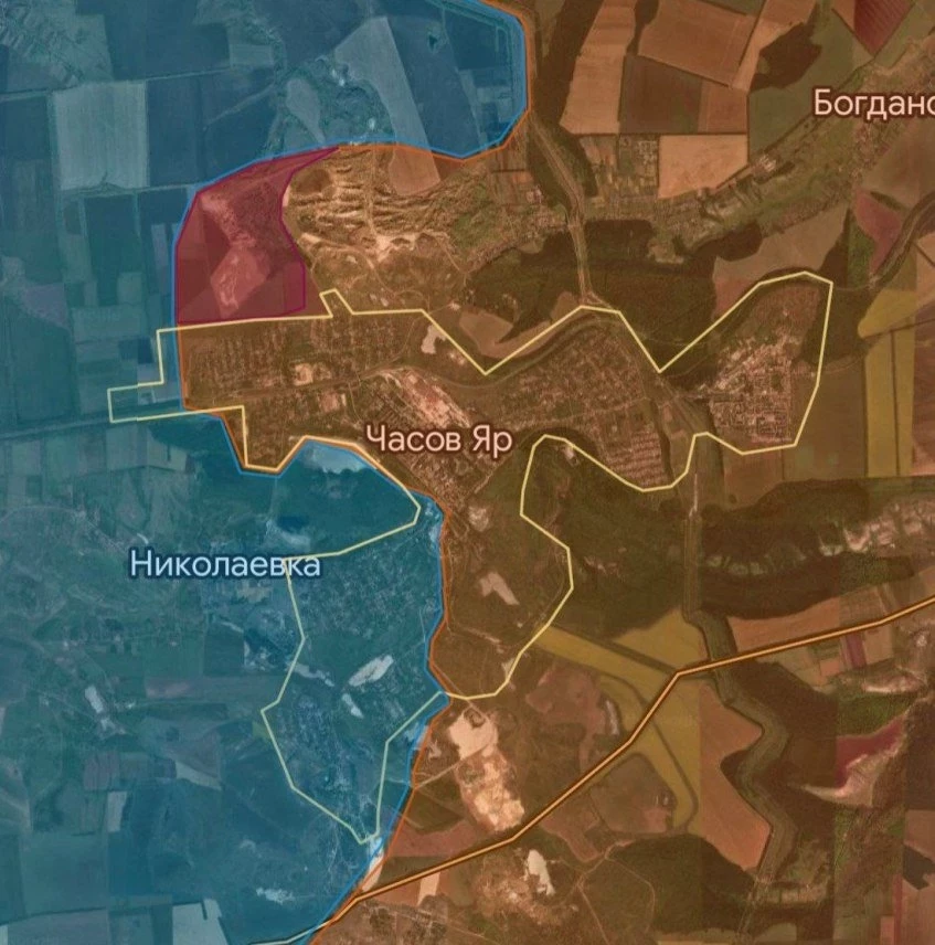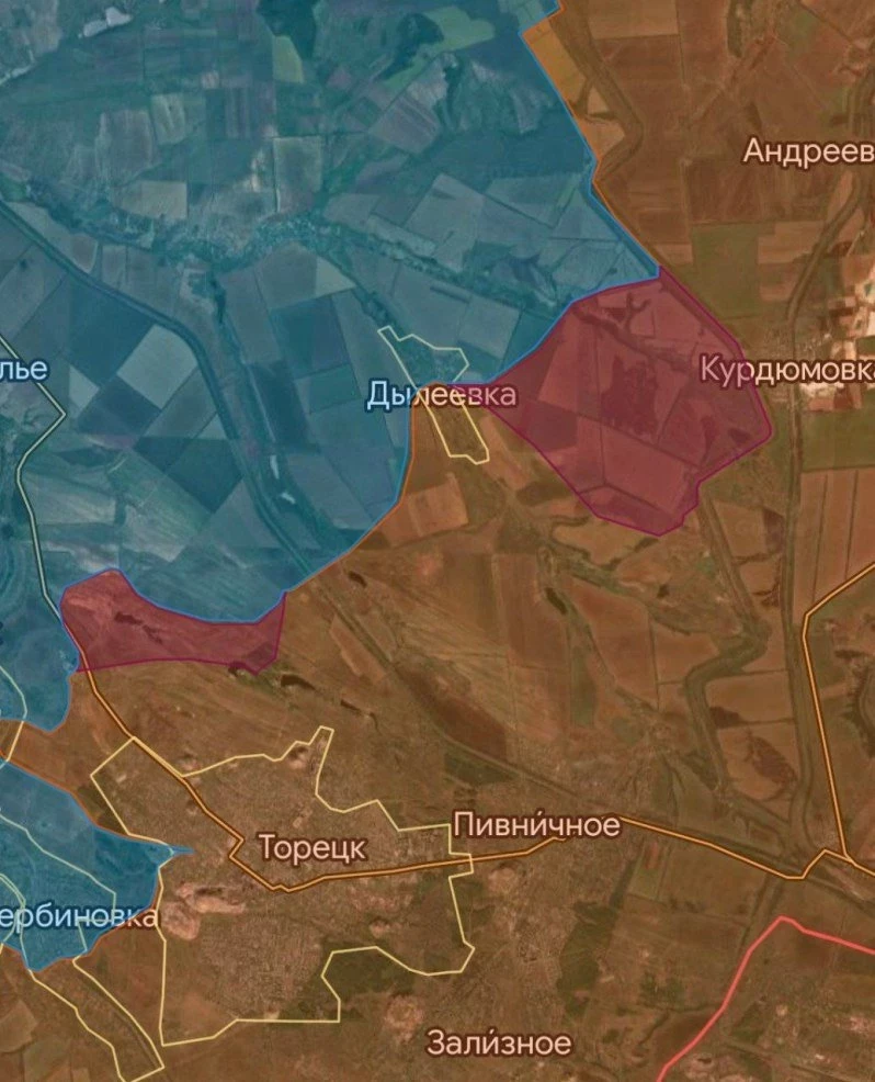На Константиновском направлении продолжаются встречные бои в районе Ступочек. ВС РФ давят в районе Дылеевок и севернее Торецка, имеются тактические успехи. Российские войска ведут штурмовые действия в Александро-Калиново с опорой на Яблоневку и Зарю.