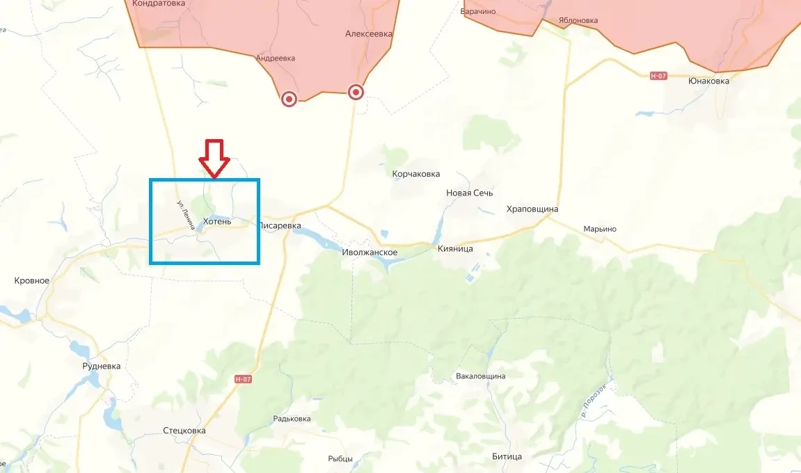Согласно оперативным данным, поступающим с севера Сумской области, под контроль наступающих из Кондратовки подразделений ВС РФ перешли все опорные пункты противника в направлении села Хотень.