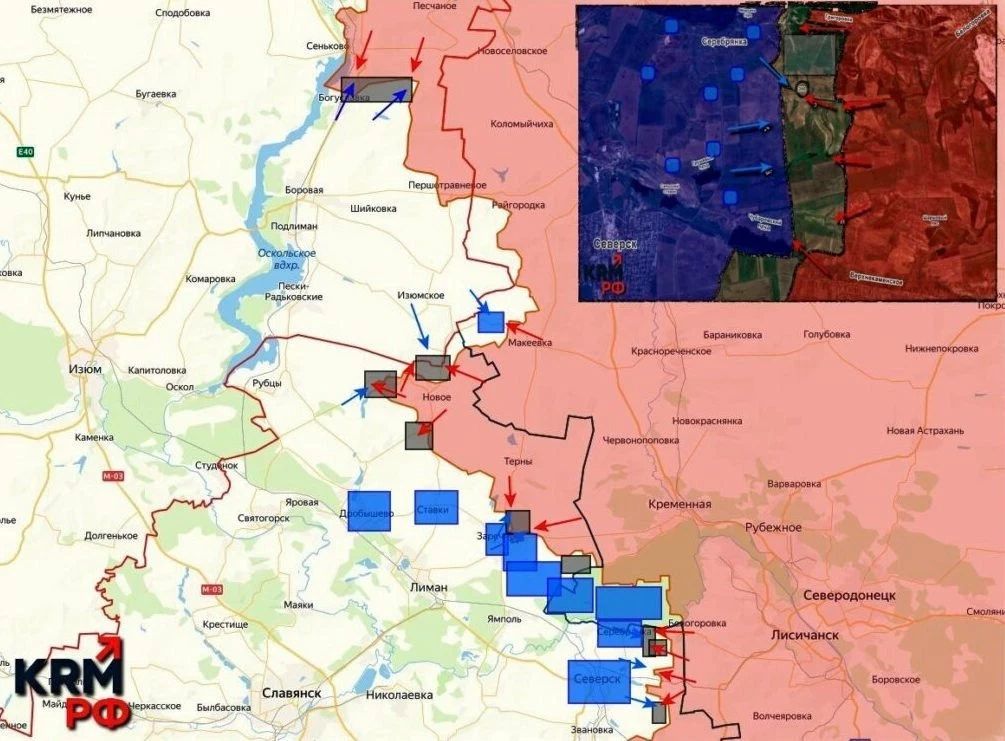 На Краснолиманском направлении ВС РФ отбили у ВСУ крупный укрепрайон на севере от Редкодуба, в районе села Глущенково. За неделю наши здесь продвинулись примерно на километр. В районе Грековки зафиксировано продвижение ВС РФ, ведётся выравнивание флангов вдоль балки Галичевка.