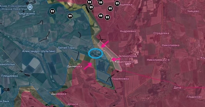 На Северском участке армия России продвигается от Ивано-Дарьевки в сторону Новосёловки.