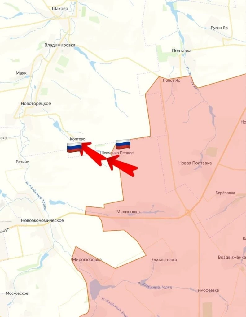 На Покровском направлении очень тяжёлые бои идут по границе с Днепропетровской обл. ВС РФ стараются пробиться в районе Новониколаевки и Муравки. Западнее Гродовки ВС РФ развивают наступление в направлении села Проминь, которое лежит менее, чем в 1 км от окраин города.